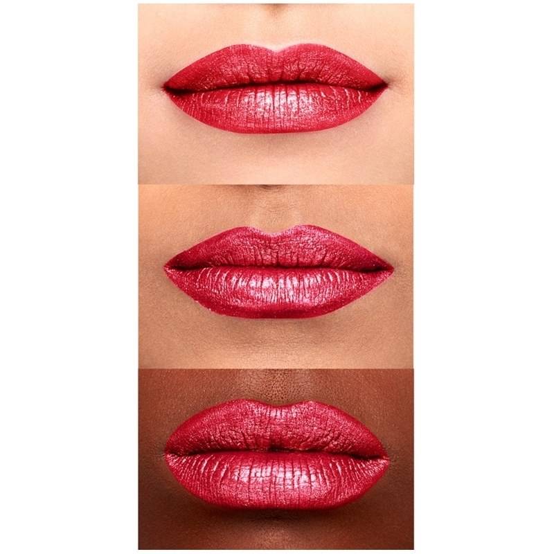 Applying Glitter Goals Liquid Lipstick in Cherry Quartz is simple and quick. Use the precision applicator to outline your lips, then fill them in with the rich red color. Allow a few minutes for the lipstick to dry. Once set, press your lips together to activate the glitter. The transformation is immediate, revealing a dazzling glitter finish that elevates your look. It’s a simple way to add some sparkle to your day or night.
